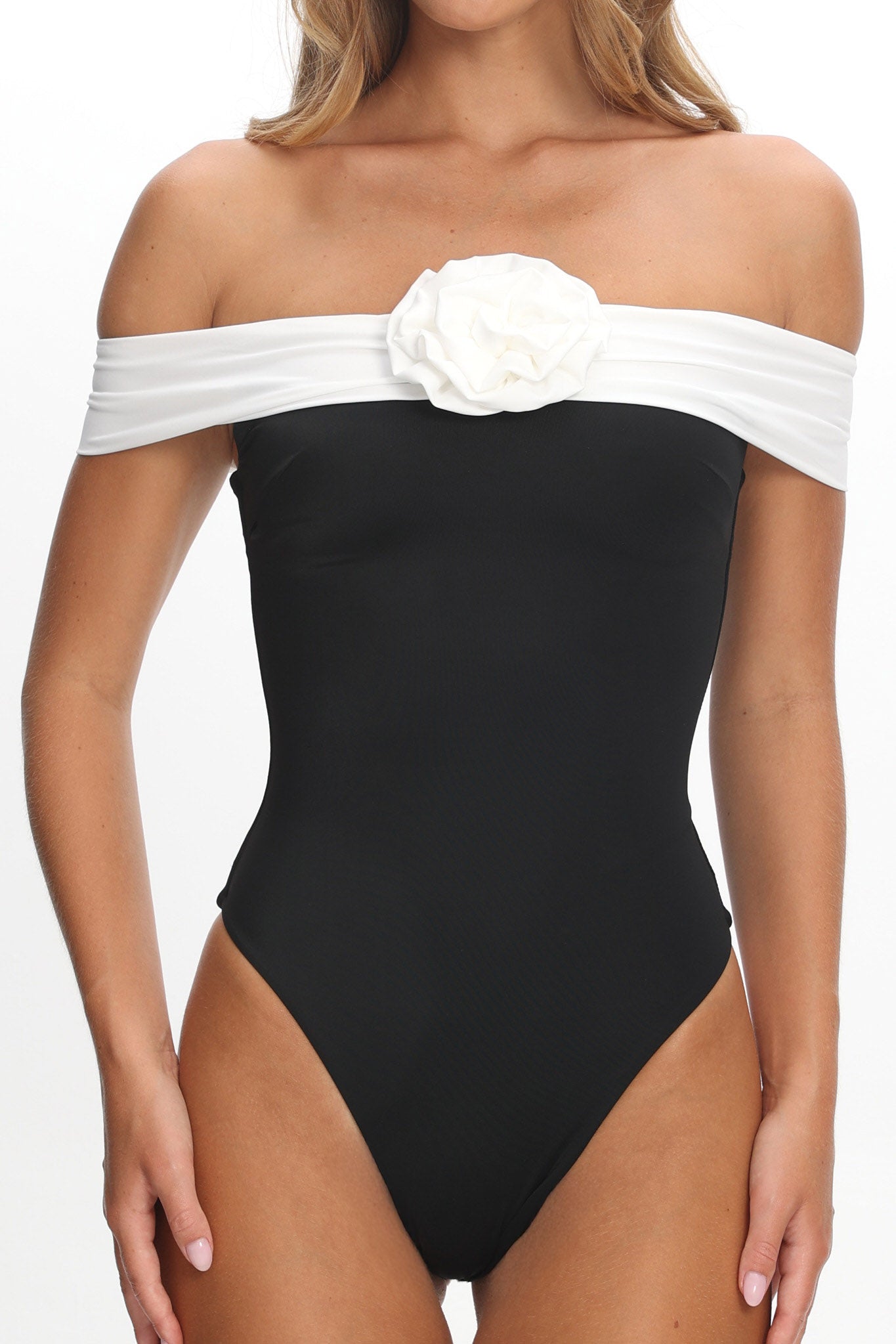 Make a splash in our chic Lorona one-piece. fIt eatures an off-shoulder neckline and rosette detail. It's perfect for pool parties or taking a dip at your fave beach spot. Team it with slides and a sarong for a classic look.